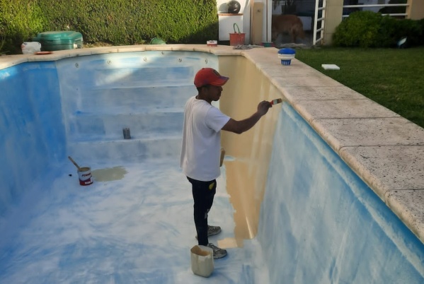 Hace un tiempito compró una bomba y labura limpiando piletas, pintándolas, sacándole el sarro. Es su changa veraniega pero que surte buen efecto.