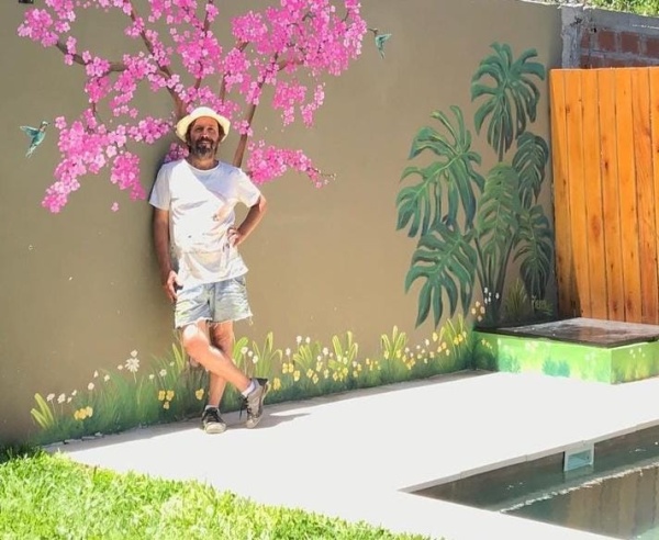 La flora y fauna son protagonistas de los murales de este artista, es muy fácil identificar su arte si vas por la calle, o en alguna pared de un hogar platense, y también fachadas y percianas de locales.