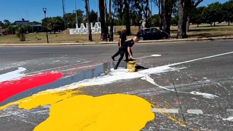 Ante esto, toda la calle quedó totalmente cubierta de pintura, generando un caos en el tránsito.