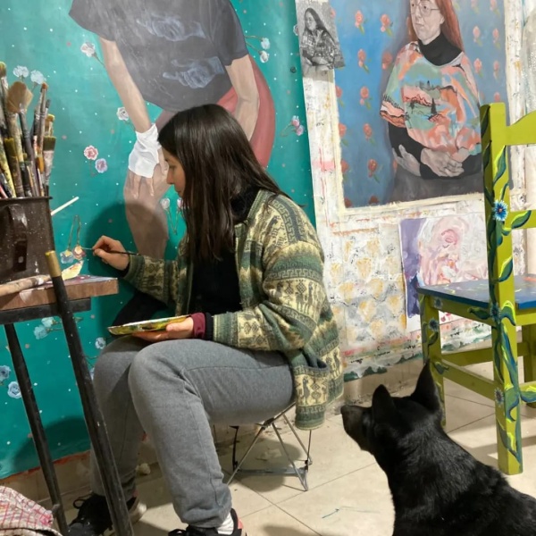 Pinta desde los diez años. Hizo la universidad en Chile, donde estudió Historia y además siguió en simultáneo talleres de artistas de Concepción, y se formó de esa manera.