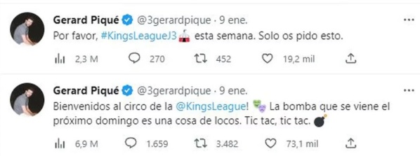 Si bien muchos usuarios comentaron que el tuit estaría dirigido a Shakira por su nuevo lanzamiento, en realidad se trataría de una promoción que el exfutbolista se encuentra llevando adelante de La liga de los reyes.