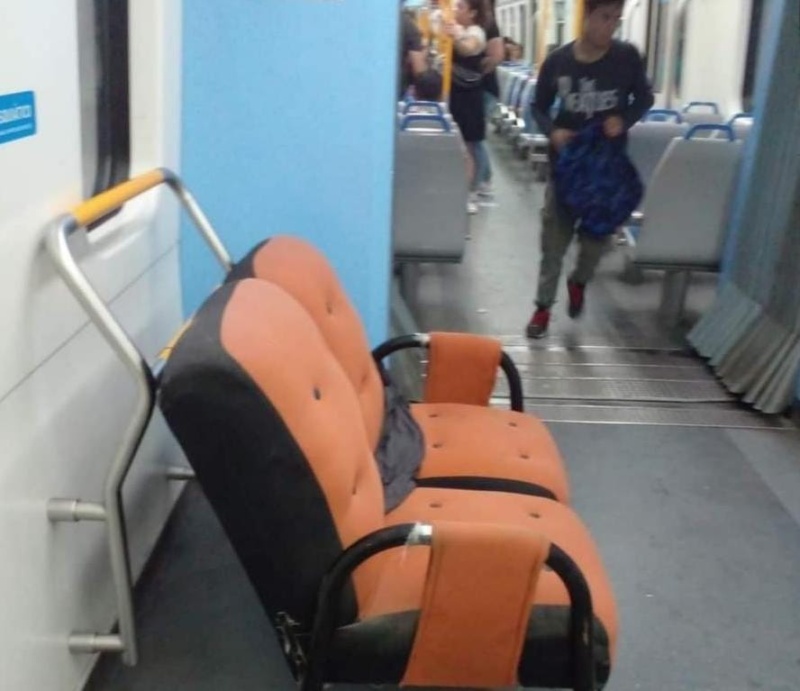 En los trenes se puede encontrar de todo, y en este caso un simple sillón naranja revolucionó a varios usuarios a los cuales le pareció gracioso la imagen. Pero también lo que se destaca fuerte es el texto que acompaña a la anecdótica foto.