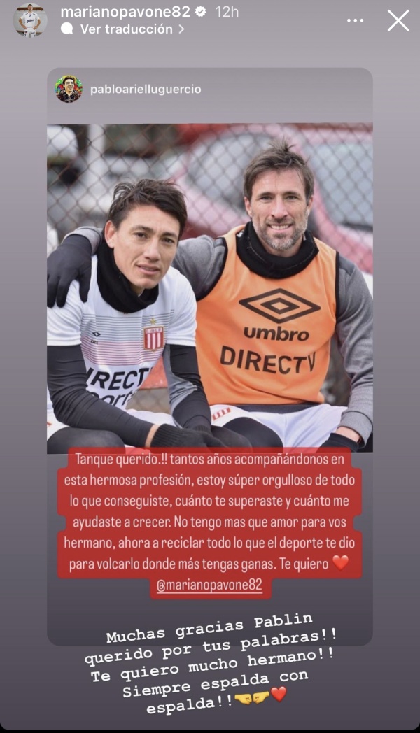 Gran parte de los futbolistas ya retirados cuentan que, probablemente, colgar los botines sea de una de las decisiones más difíciles de tomar. Para Mariano Pavone seguramente así fue, y tras meditarlo detenidamente, lo comunicó en las últimas horas en sus redes sociales. Allí, entonces, aparecieron distintos mensajes y saludos de sus amigos, colegas e hinchas. Y si bien pasó por varios clubes, está claro que Estudiantes es su casa y ahí forjó grandes amistades.