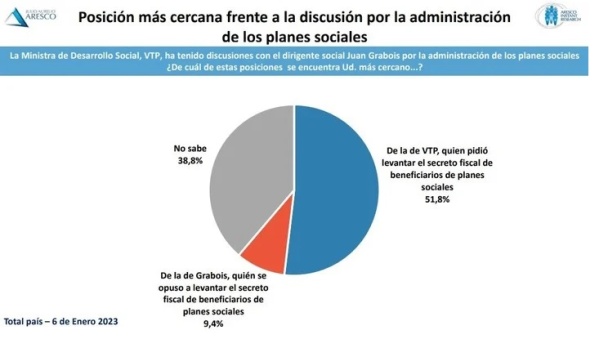 Los resultados fueron los siguientes: sólo un 9% se manifestó a favor de Grabois, "quien se opuso a levantar el secreto fiscal de beneficiarios de planes sociales", mientras que una mayoría del 52% opinó a favor de Tolosa Paz, "quien pidió levantar el secreto fiscal de beneficiarios de planes sociales".
