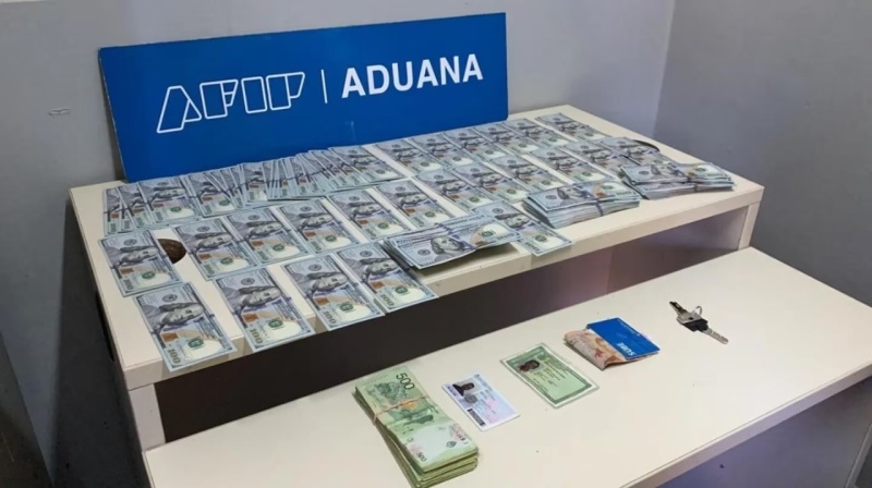 Un hombre intentó entrar al país con 40 mil dólares y 42 mil pesos escondidos en las medias y fue detenido. El delincuente fue descubierto mientras el personal de la Aduana realizaba unas tareas de control.