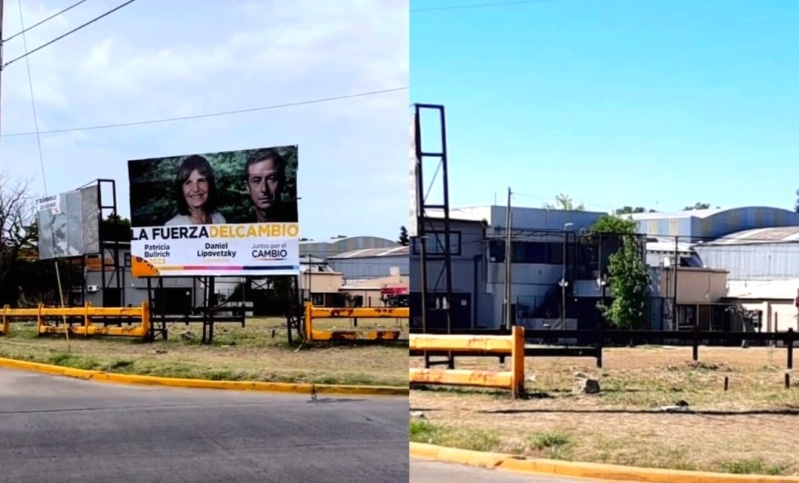 Luego de varios intentos por romperlo y querer dañarlo, se terminaron llevando una marquesina de Patricia Bullrich que estaba ubicada en la calle 117 y 32, junto con ella aparecía Daniel Lipovetzky.