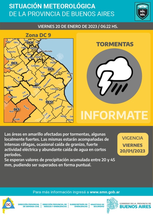 El servicio meteorológico nacional emitió hace instantes un alerta por fuertes tormentas en toda la región.