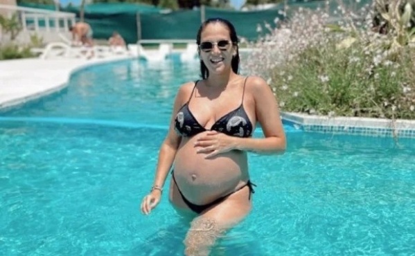 Muy ilusionada por el pronto nacimiento de su primogénito, Barbie posó en la piscina luciendo su súper panza de embarazada durante sus últimas vacaciones antes de parir.