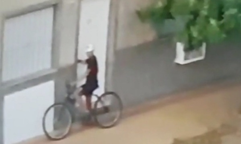 Además, se puede ver la clara imagen de un joven en bicicleta que merodea por una cuadra y después, se llevó los picaportes.