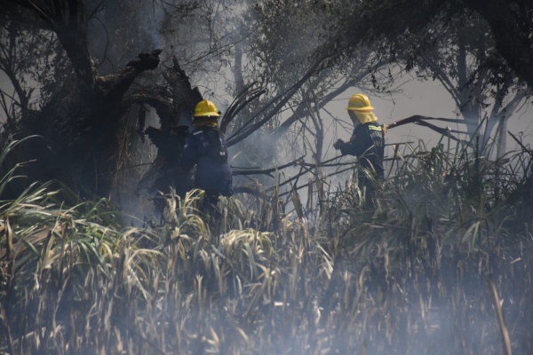 Según informaron, el foco de incendio se ubica sobre la Costa, al fondo de uno de los campings del lugar, entre la última calle de Punta Lara y el Camino Negro.