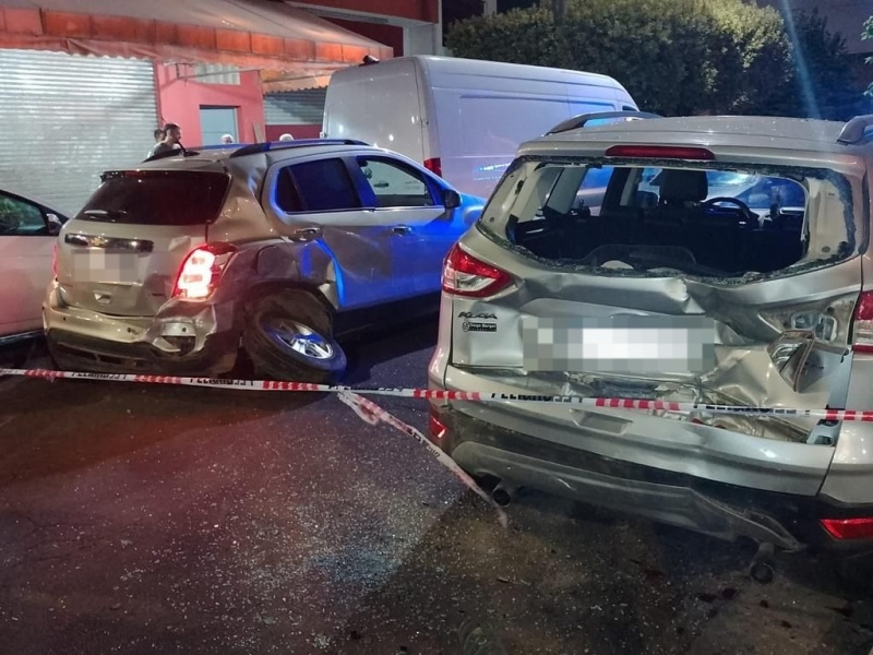 En el medio del tiroteo, uno de los vehículos chocó y se llevó por delante un auto marca Ford, por lo tanto, los dos implicados al verse atrapados, huyeron corriendo.