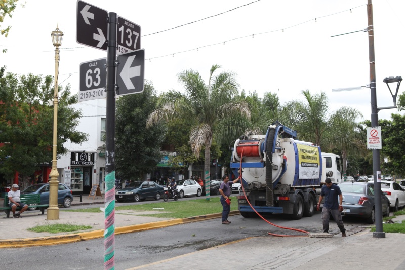 Desde la madrugada, las cuadrillas Comunales encararon un trabajo sostenido en diversos puntos del casco urbano, Tolosa, Los Hornos y Villa Elvira, entre otras localidades intervenidas.