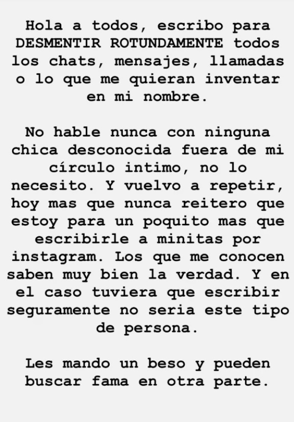 En un explosivo posteo, el padre de las dos hijas menores de Wanda Nara enfatizó "desmentir rotundamente todos los chats, mensajes, llamadas o lo que quieran inventar".