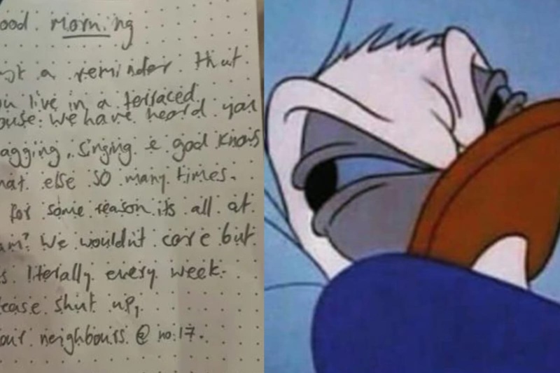 "Buenos días. Solo un recordatorio de que vives en una casa adosada", escribieron los vecinos del hombre, y le pidieron que cambie su conducta, dado que estaban cansados de que el bullicio los despierte a altas horas de la madrugada.