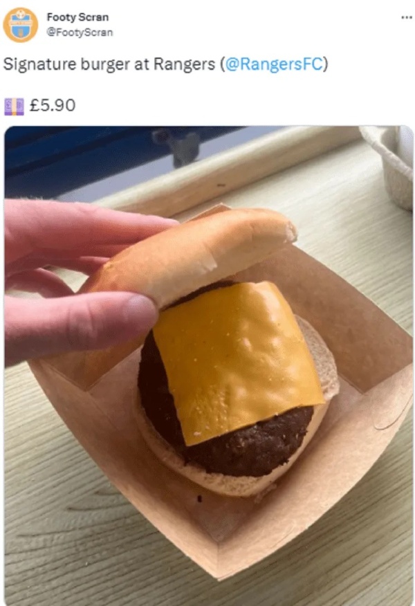 El menú le llamó mucho la atención, puesto que según afirmaba, la hamburguesa venía con queso. Además, la presentación era atrayente: vino en una caja de cartón, al estilo de los negocios gastronómicos de comida rápida. La situación fue compartida por la cuenta de Twitter "FootyScran", la cual cuenta con 500 mil seguidores.