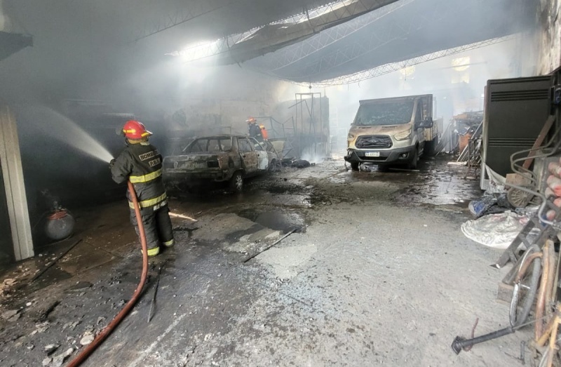 Alrededor del mediodia de este jueves, un incendio se desató en un galpón y dos vehículos se vieron afectados.