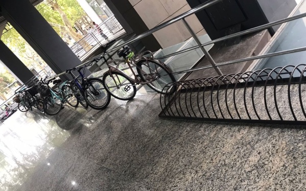 Los empleados de Torre 1 que se encuentra ubicada en 12 y 51 están "entregados" ante la situación. Afirman que el bicicletero disponible está muy cerca de la seguridad del edificio.