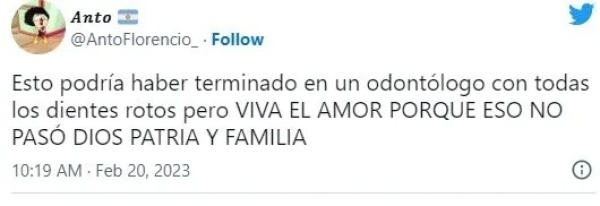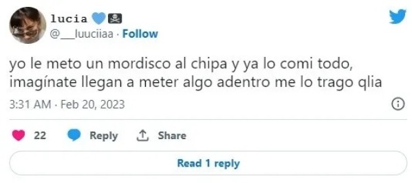 Entre los comentarios de los usuarios felicitando a la pareja apareció un internauta que juzgó el momento. "Pero si a una chipa la comes como mucho de dos mordidas", indicó el sujeto, que fulminó la idea del novio. "Imagínate el anillo ahí metido, o te lo tragas o te rompes una muela, me parece la peor idea del mundo", criticó.