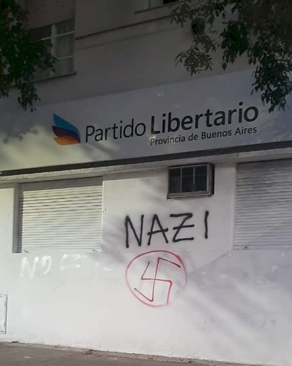 Vandalizaron la sede platense del Partido Libertario con símbolos Nazis