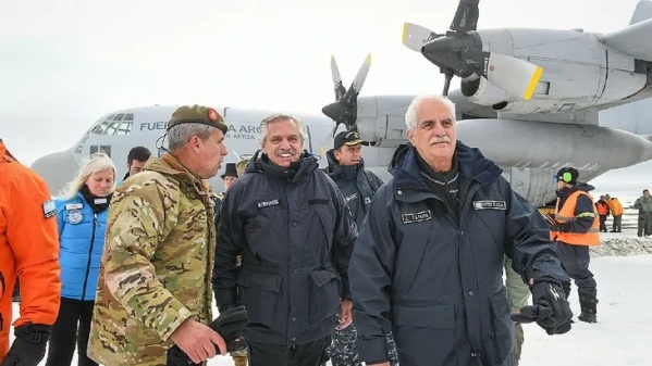 Fernández está acompañado por el canciller Santiago Cafiero, los ministros de Defensa, Jorge Taiana; de Desarrollo Social, Victoria Tolosa Paz; de Ciencia, Tecnología e Innovación, Daniel Filmus; de Ambiente y Desarrollo Sostenible, Juan Cabandié; el secretario de Malvinas, Antártida y Atlántico Sur, Guillermo Carmona; y la portavoz de la Presidencia, Gabriela Cerruti.