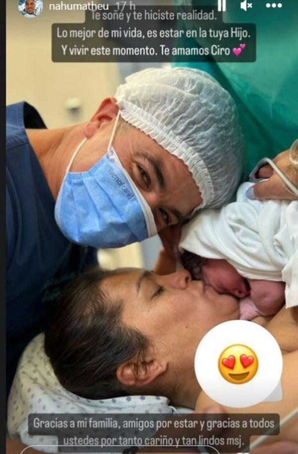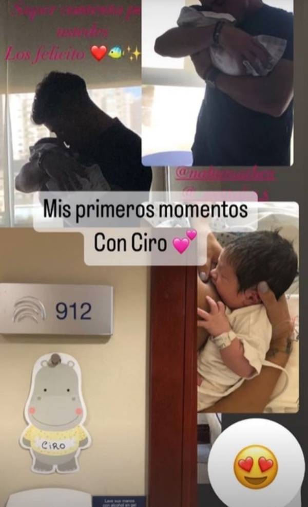 "Te soñé y te hiciste realidad. Lo mejor de mi vida es estar en la tuya hijo. Y vivir este momento. Te amamos Ciro. Gracias a mi familia, amigos por estar y gracias a todos ustedes por tanto cariño y tan lindos mensajes", agradeció Nahuel. Y acotó: "Mi felicidad pesa 3.500 kilos La primera siesta juntos".