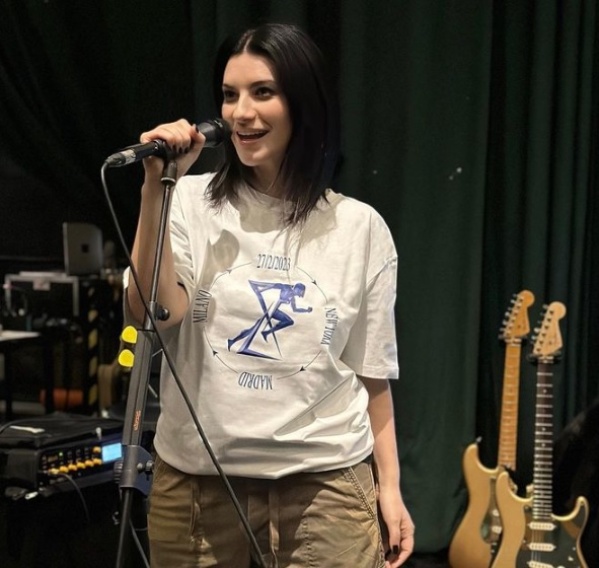 El look, confeccionado especialmente para ella, incluye la icónica chaqueta inspirada en el modelo que lució la artista cuando debutó en Sanremo 93, con una inserción del logotipo bordado que caracteriza la versión 2023 para su 30 cumpleaños.