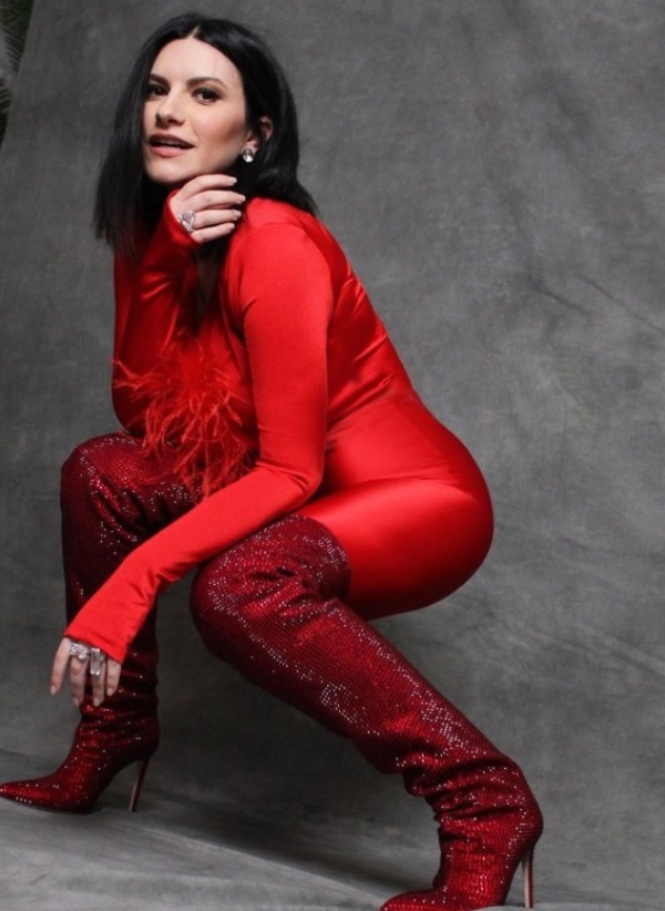 Para esta ocasión especial, Laura Pausini ha elegido vestir un traje Emporio Armani, renovando así su fuerte vínculo con la marca italiana.
