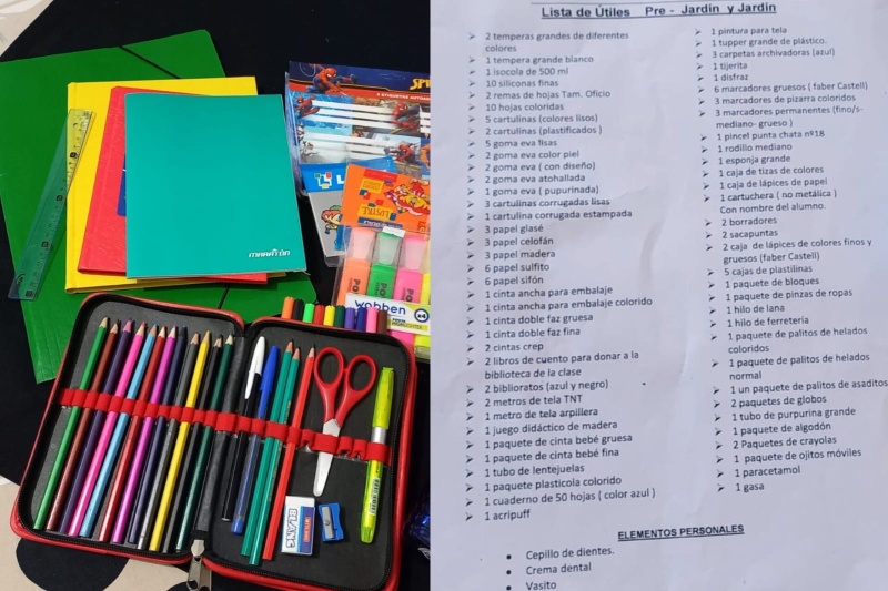 “La que volvió de vacaciones con pocas exigencias es la maestrita del jardín de la bendi”, escribió el usuario @gabrielHLucero, junto a la imagen de una foto que detalla una gran variedad de elementos como: “2 temperas grandes de diferentes colores”, “3 papel giasé”, “1 paquete de palitos de helados coloridos”, “2 paquetes de globos”, entre otros.