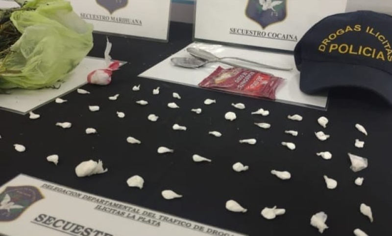 Tras el allanamiento, le incautaron 53 envoltorios con cocaína valuados en 100 mil pesos, tres plantas de marihuana, 32.250 pesos, un celular, anotaciones, elementos de corte y una balanza digital.