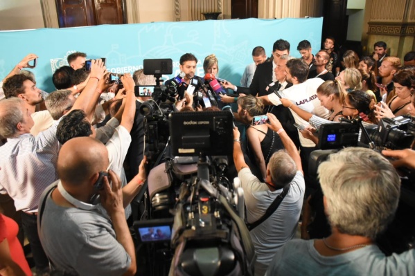 Finalmente fueron Carlos Bianco y Cristina Álvarez Rodríguez quienes se acercaron a la Legislatura a comunicar la suspensión. Con los reflectores, la temperatura escalaba a los 40 en el hall del Senado. Era el final de una fallida jornada.