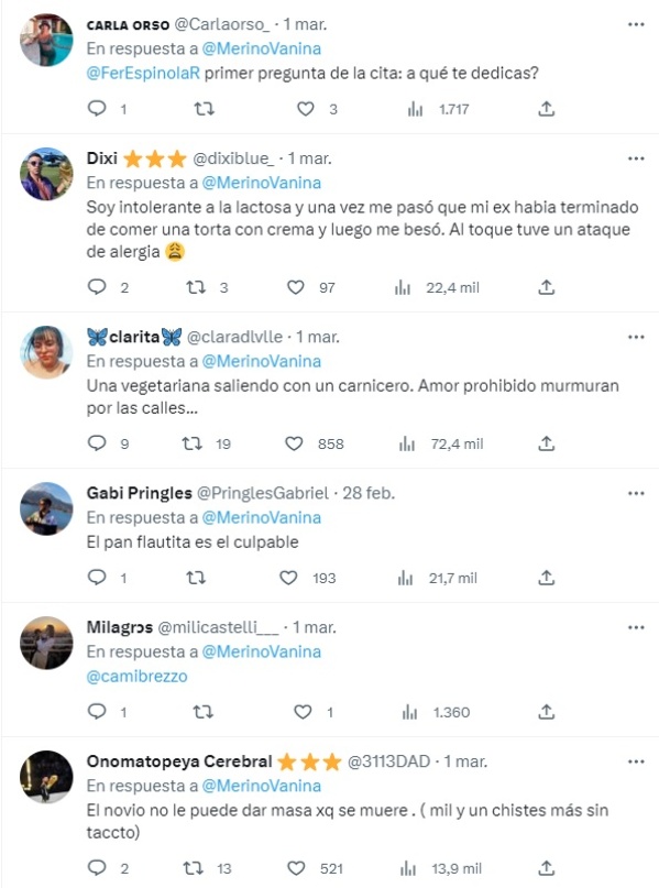 "Soy intolerante a la lactosa y una vez me pasó que mi ex habia terminado de comer una torta con crema y luego me besó. Al toque tuve un ataque de alergia", contó una usuaria. Otra, más precavida, reveló: "Por acá alergia severa al huevo. Novio se lava los dientes si come algo con huevo afuera (porque a casa ni entra nada con huevo). Soy exagerada?".