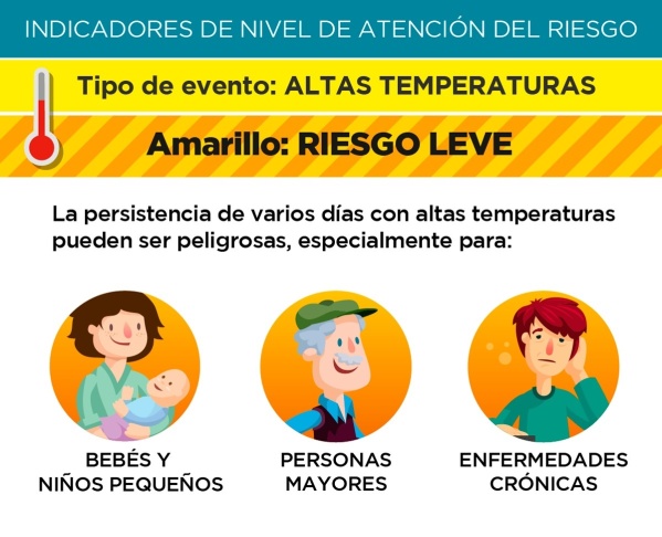 “Seguirá el tiempo muy caluroso para hoy y los próximos días con poco cambio en la temperatura, por tal motivo mantenemos el Nivel de Atención del Riesgo 'Amarillo'.