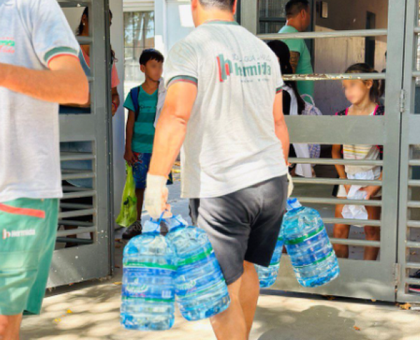 El Municipio y el Consejo Escolar dispusieron un mega operativo para garantizar la entrega de agua a miles de chicos de las diferentes escuelas de la Ciudad. Buscan evitar la suspensión de clases producto de la ola de calor y los inconvenientes de abastecimiento del servicio por parte de la empresa ABSA.