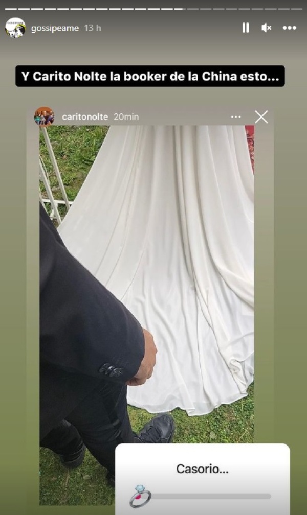 También, la booker y gran amiga de la actriz, Caro Nolte, subió una Historia de Instagram con la cola de un vestido de novia.