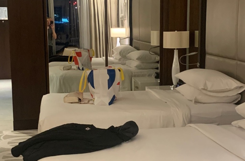 Al enviarle una foto, se ve que encima de una de las camas hay una cartera de mujer. Ante este detalle, el joven explicó “pero no ella en mi cama, nos encontramos en el avión y pedimos un taxi”.