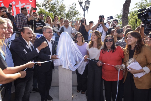 La ministra de Desarrollo Social, Victoria Tolosa Paz inauguró un nuevo busto de Eva Duarte en la plaza 25 de Agosto. En el acto participaron el gobernador Raúl Jalil y su comitiva integrada por ministros y legisladores.