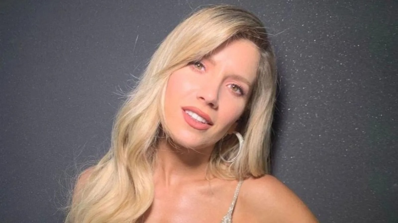 Para la parte inferior utilizó una colaless con tiras pequeñas con un estilo de tela original. Con casi nada de maquillaje y su cabello todo alborotado, laurita se mostró más radiante que nunca, durante la "hora golden".