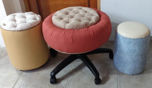 “Uno puede ser muy profesional, pero si no sabe trasmitirlo, es imposible”, agrega la reina del puff. Y es que ha hecho puff con materiales que pueden parecer insólitos: con muebles en desuso, con botellas plásticas, con tachos de pintura, con neumáticos.