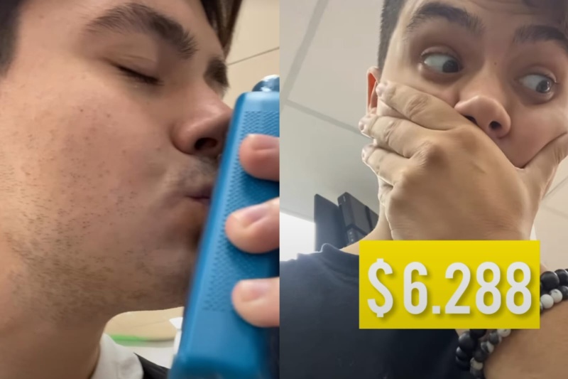 Luego prosigue a filmar diferentes productos y comparar sus precios: “Empecé con un protector solar que sale 1.355 pesos uruguayos, que son 34 dólares, que son 13.323 pesos el protector solar. En Buenos Aires lo conseguí a 2.490, 10.800 pesos más barato, bésalo todo sí”.