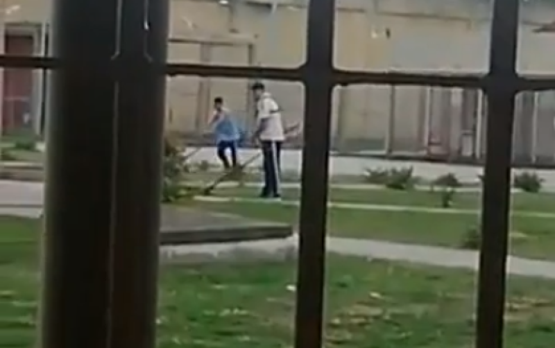 En el video se ve, al menos, a uno de los Pertossi sentenciados contando el pasto con una máquina en medio de los gritos de los demás presos.