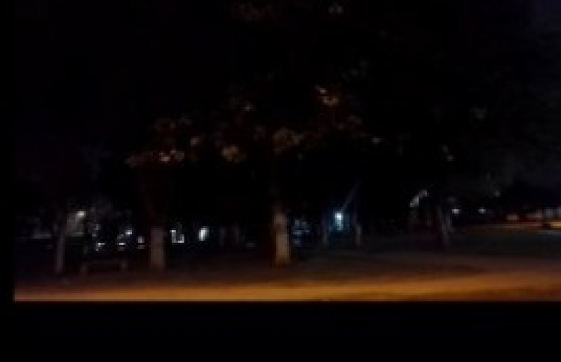 La Plaza de la Paz, ubicada en las calles 196 y 45, en Lisando Olmos permanece a oscuras.
