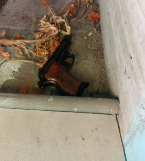 En el lugar también se encontró un arma de fuego descartada por los motociclistas.