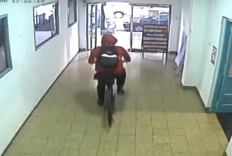 En las imágenes se observa como el joven nota la bicicleta “suelta” dentro del establecimiento y se marcha del sitio conduciendo la misma.