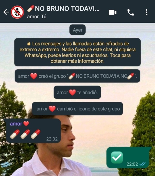 mi novio hizo un grupo para recordarme que tome la pastilla anticonceptiva y bruno es el nombre que le vamos a poner a nuestro hijo ???????????? pic.twitter.com/5QF6wpio0m