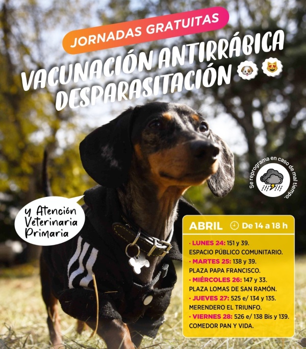 Es importante recordar que, cumplidos los tres meses, se les debe aplicar obligatoriamente la vacuna antirrábica a todos los perros y los gatos una vez al año y que para participar de las jornadas deben concurrir con correa y, en caso de ser necesario, bozal.