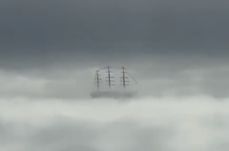 En la mañana del lunes, desde el punto más alto de las Torres de Manantiales, solo se podía observar una esponjosa pared blanca. Hasta que, de repente, apareció el buque escuela de la Armada Argentina “navegando” entre las nubes.