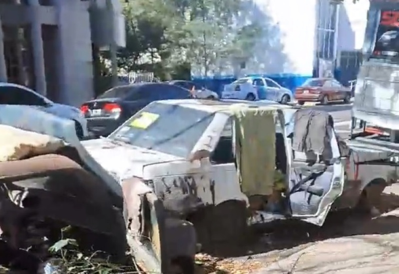 En el video se puede ver no solamente el deterioro de los vehículos sino a acumulación de basura en los mismos.