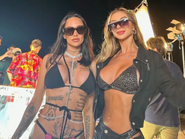 Romina Malaspina brindó un show como DJ y se cruzó con La Joaqui, con quien se sacó una foto y la subió a sus redes sociales. Ambas vistieron microbikinis mientras disfrutaban el evento en la playa.