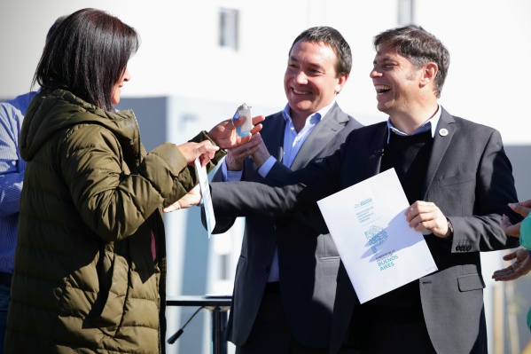 El gobernador de la provincia de Buenos Aires, Axel Kicillof, encabezó esta mañana el acto de entrega de 62 viviendas a familias de Florencio Varela