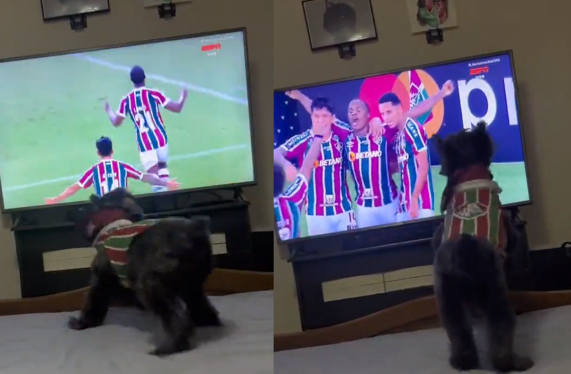 Un perro fue grabado por su dueño mientras veía el partido en Fluminense y River, carismáticamente celebró cada uno de los goles del equipo brasilero.
